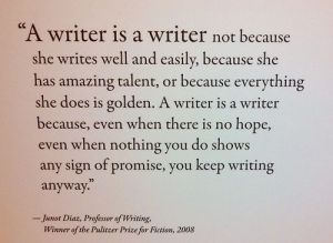 Some of what’s available is personal to that writer and may not apply to you. Not every writer drinks coffee or tea for that matter. Not every writer gets inspiration from the same sources. We don’t all write about the people we love. Don’t worry if some piece of advice you receive doesn’t relate to you. And when some if it is downright twee (like this glurge below) feel free to roll your eyes and move along.